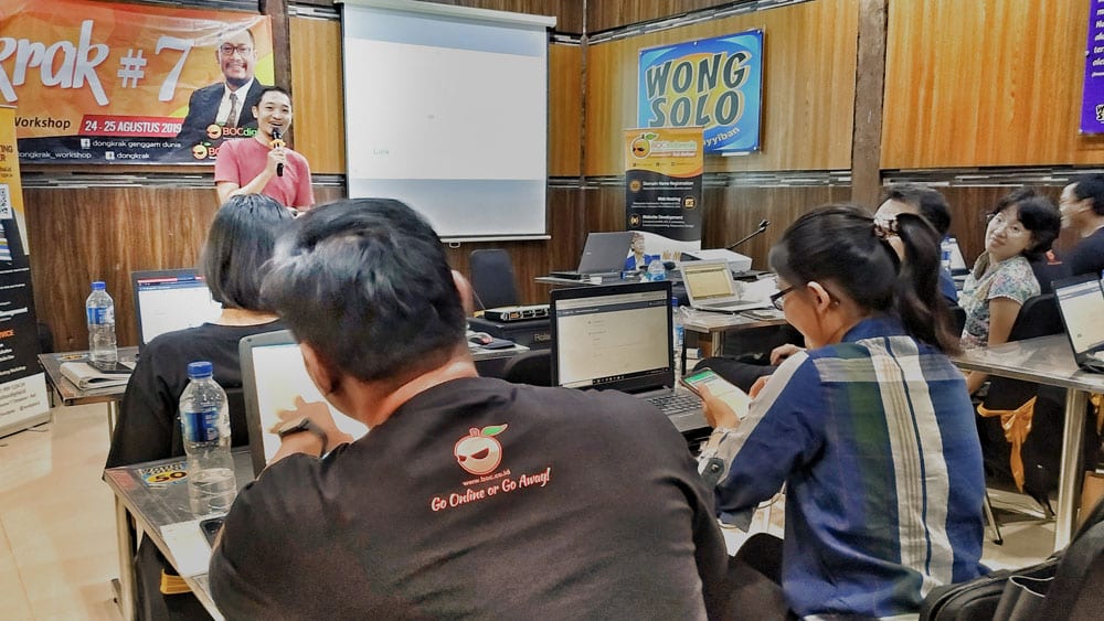 Kegiatan workshop DONGKRAK selama 2 hari memberikan peserta nya full praktek cara buat website efektif yang disukai Users (robot search engine dan manusia), cara setting iklan di Google, FB dan IG, cara setting email bisnis dan teknik email marketing, ciptakan profil bisnis di Google Bisnisku, cara buat video marketing dan terapkan key activities dalam digital marketing.