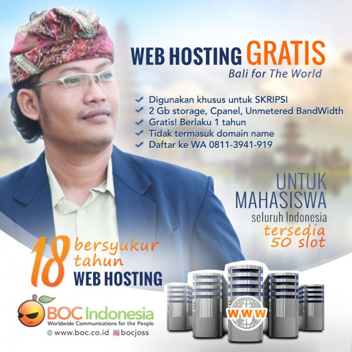 Dalam rangka bersyukur atas perjalanan BOC Indonesia layani ribuan pelanggan dan memberikan kesempatan kepada mahasiswa mengenali alat standart industri website, maka BOC Indonesia tawarkan web hosting gratis setahun, dengan syarat: