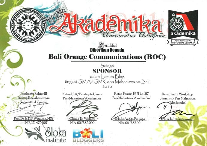 Beberapa penghargaan yang diterima oleh BOC. Kegiatan-kegiatan tersebut sesuai dengan visi dan misi BOC dalam kehidupan berwirausaha, bersosial dan membumikan teknologi informasi bersama masyarakat.